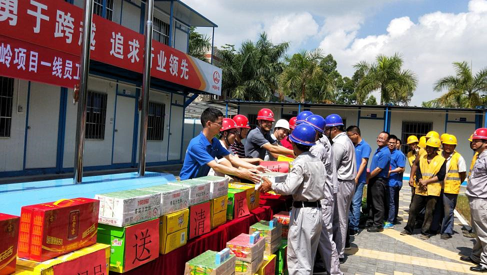 北控集團(tuán)領(lǐng)導(dǎo)到橫嶺項(xiàng)目為一線員工送清涼 5月21日上午,北控橫嶺項(xiàng)目部項(xiàng)目經(jīng)理梁振澤、橫嶺廠廠長(zhǎng)萬(wàn)巍一行到橫嶺污水處理廠一期提標(biāo)改造工程項(xiàng)目部為一線員工送清涼,揭陽(yáng)項(xiàng)目經(jīng)理凌利云、黨支部書(shū)記