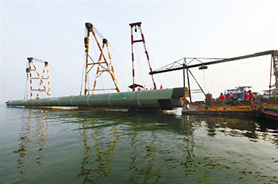 7月27日,徐州駱馬湖水源地第三標(biāo)段施工現(xiàn)場(chǎng),中鐵上海局市政公司員工冒著酷暑在湖中心吊裝最后一節(jié)內(nèi)徑2.6米、長(zhǎng)80.4米、壁厚28毫米的原水取水管道。大口徑長(zhǎng)距離鋼管引水管線(xiàn)最后一節(jié)的就位,標(biāo)...