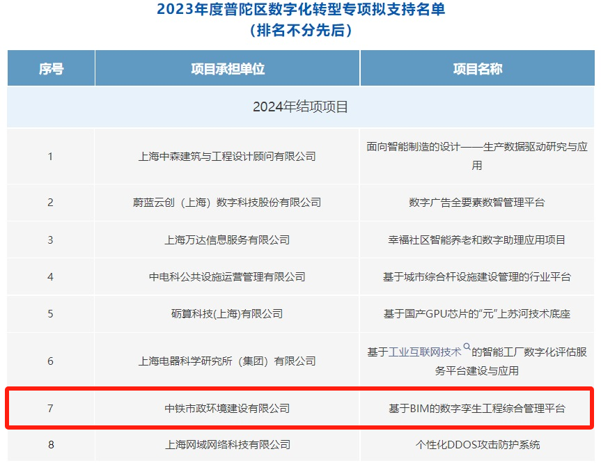 近日,公司《基于 BIM 的數字孿生工程綜合管理平臺》課題順利通過上海市普陀區科委公示,成功入選2023 年普陀區數字化轉型項目并獲得147萬元專項資金支持。...
