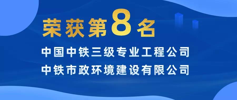 近日,中國中鐵發(fā)布了2020年度 “中國中鐵三級專業(yè)工程公司20強”,中鐵市政環(huán)境建設有限公司名列三級專業(yè)工程公司20強第八名,連續(xù)三年強勢入選!...