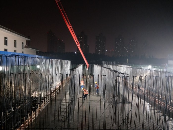 本次澆筑的底板位于三期工程接觸消毒池及巴氏計量槽,澆筑從下午5:30開始,歷時7個小時的澆筑施工,共完成205方澆筑任務。